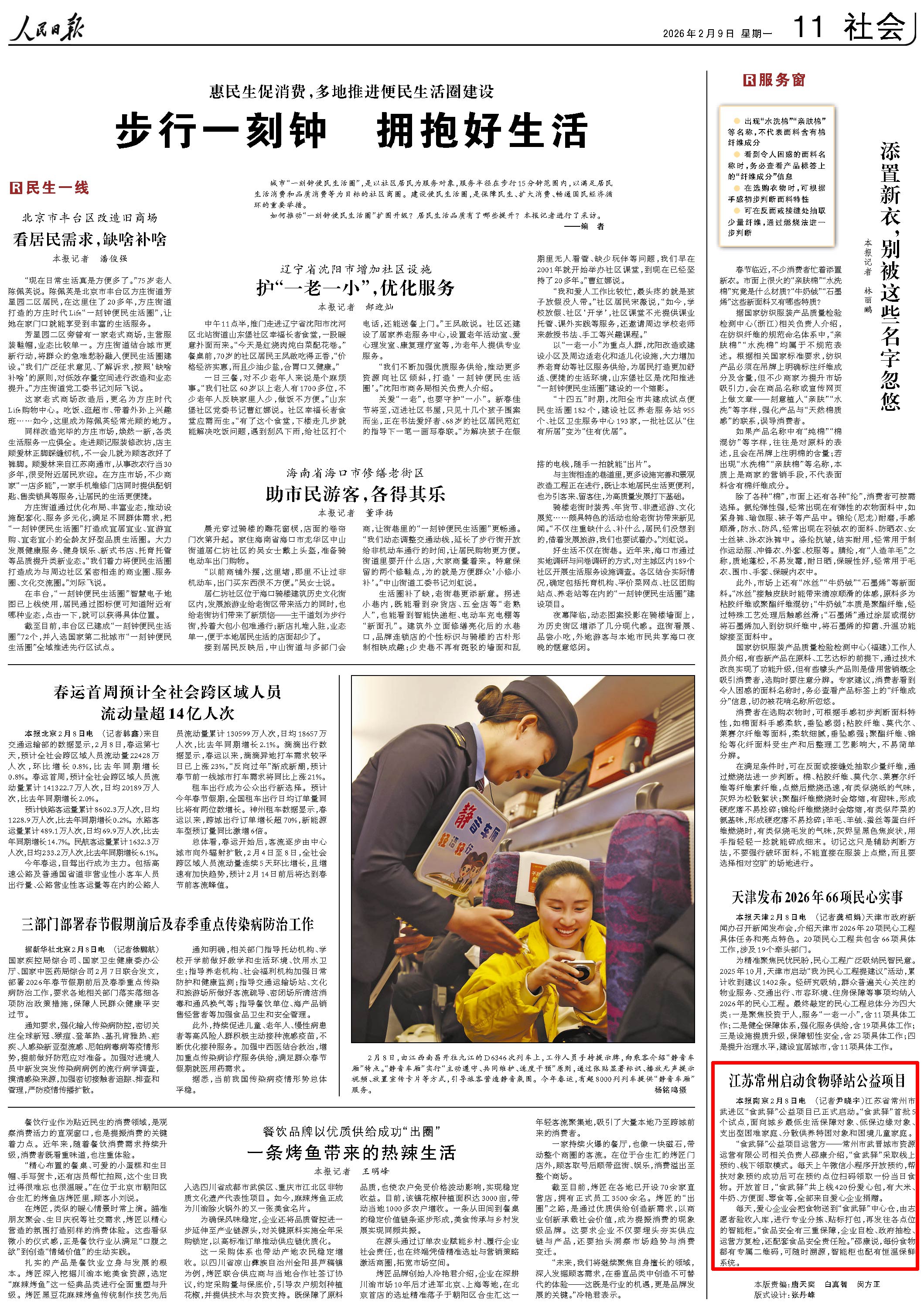 本报南京2月8日电 (记者尹晓宇)江苏省常州市武进区“食武驿”公益项目已正式启动。“食武驿”首批5个试点,面向城乡最低糊口保障对象、低保边缘对象、收入型坚苦家庭、分离供养特困对象和窘境儿童家庭。