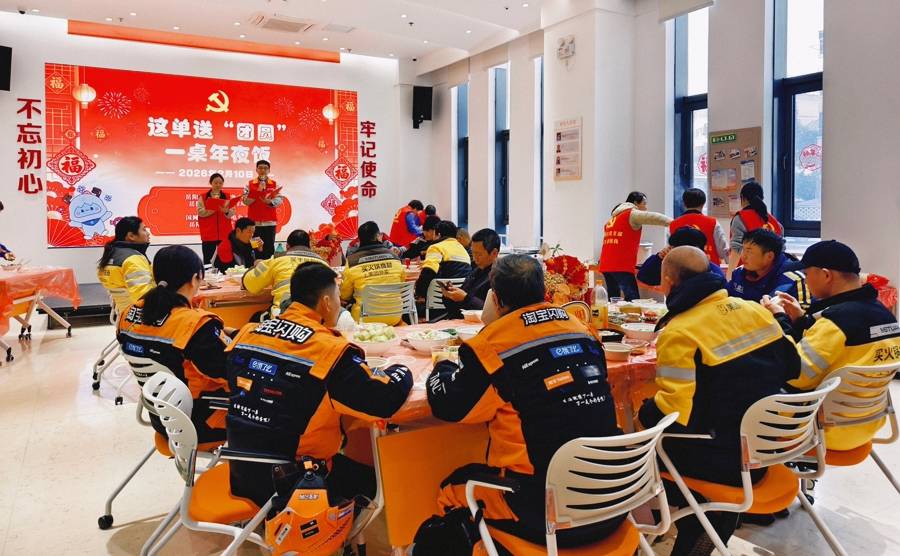2月10日,北方小年。正在岳阳街道红领汇党群办事坐,一场出格的“大年夜饭”温暖开席:由社区食堂的大厨细心定制的一道道大菜新颖呈上,街区意愿者充任派送员,社区居平易近现包水饺,企业员工暖心保障,只为了让过年期间将留松工做、继续为大师办事的骑手们坐下来一路吃一顿“团聚”餐。下战书2点,送完半夜最初一单的美团骑手卞闻星关掉系统,走进再熟悉不外的红领汇党群办事坐,预备操纵这短暂的接单“淡季”吃顿约好的团聚饭。大厅里,两张餐桌前曾经坐了好几位来自分歧平台的熟面目面貌,热心的小伙子和阿姨一路绕着桌子布菜,十几道热菜、冷盘团团铺开,看上去非分特别丰厚。