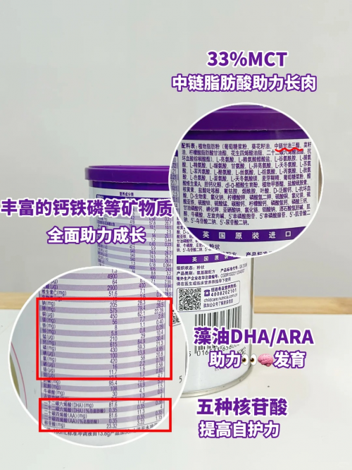纽康特氨基酸奶粉养分全面且平衡:它不只包含国标要求的婴长儿所需30种必需养分素,还额外添加了牛磺酸、胆碱、左旋肉碱等9种对发展发育至关主要的养分素,全方位帮力宝宝成长; 33%中链甘油三酯(MCT),无效提拔养分接收效率;DHA、ARA 取5种核苷酸的添加,帮帮宝宝大脑取目力发育;钙、铁、磷等微量元素含量充脚,养分密度极高,0-6月龄宝宝可将其做为独一养分来历。